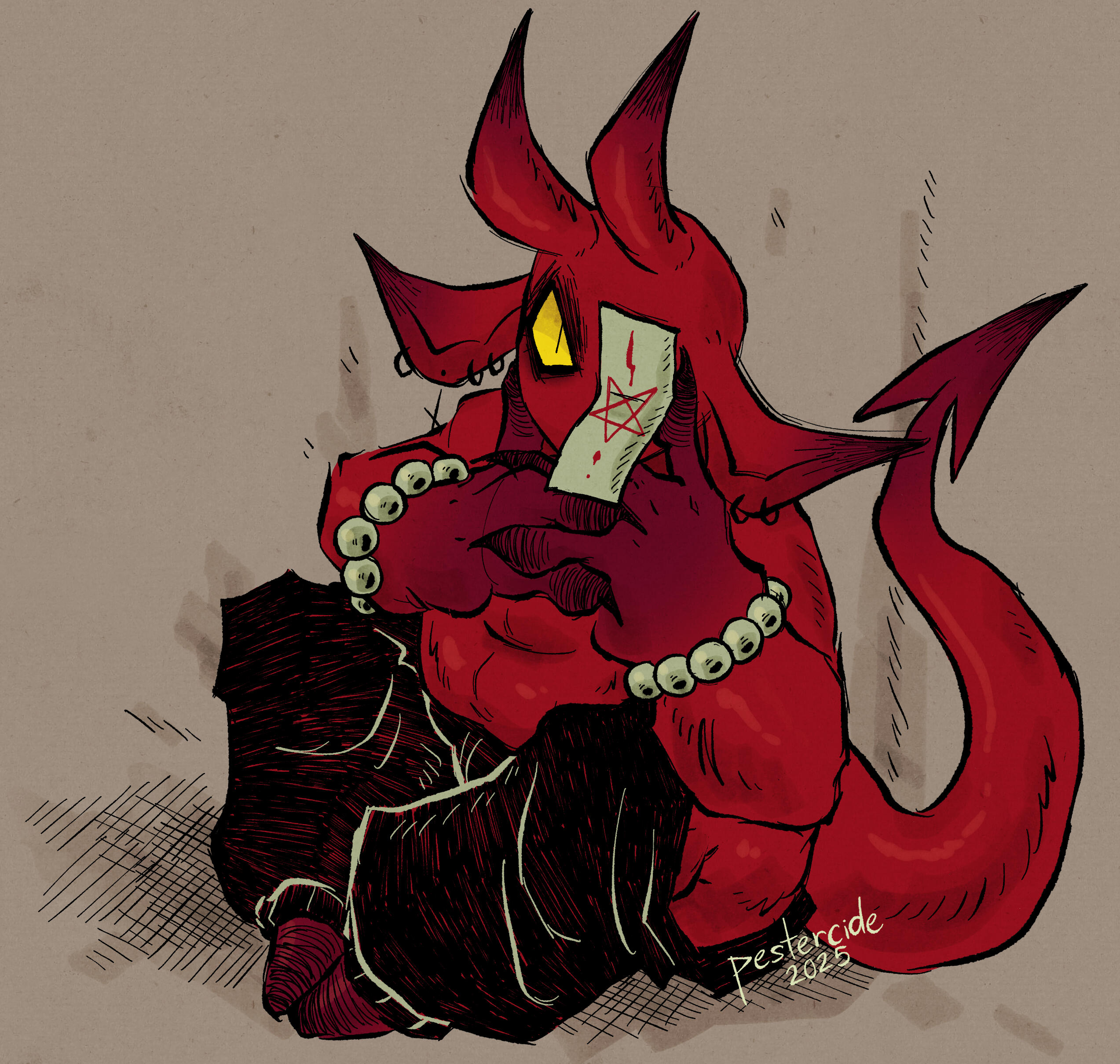 I’m MxPentagrim aka Grim!I'm a self-taught digital artist, writer and character designer. I love weird/gross/gorey stuff, demons, monsters, meat, bugs and anything kinky! I also love dark subject matter and tend to engage with media depicting taboo topics. While I don't tend to write/draw much of it myself it is something I'm hoping to get more into.I draw what I want and don't tend to stick to a specific niche or topic. Whatever I draw is typically whatever I'm fixated on at the time, so expect inconsistency in both style and subject matter!